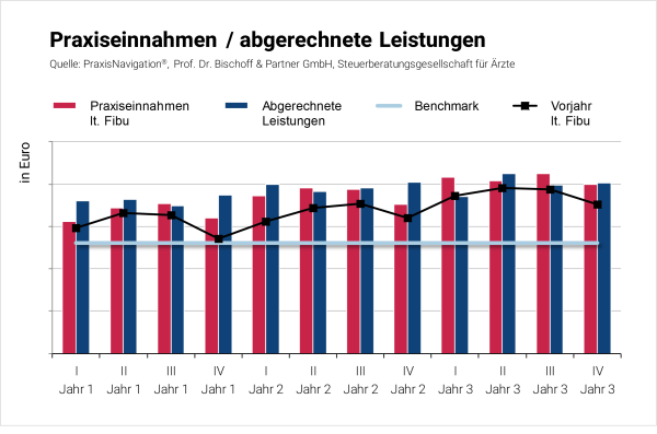Auf einen Blick erkennen Sie, wo Sie stehen. Leicht verständliche Grafiken zeigen die Entwicklung Ihrer Praxis – übersichtlich, anschaulich und schnell. Sie sehen, was gut läuft, wo noch mehr geht und wo Sie im Vergleich zu anderen Praxen stehen.